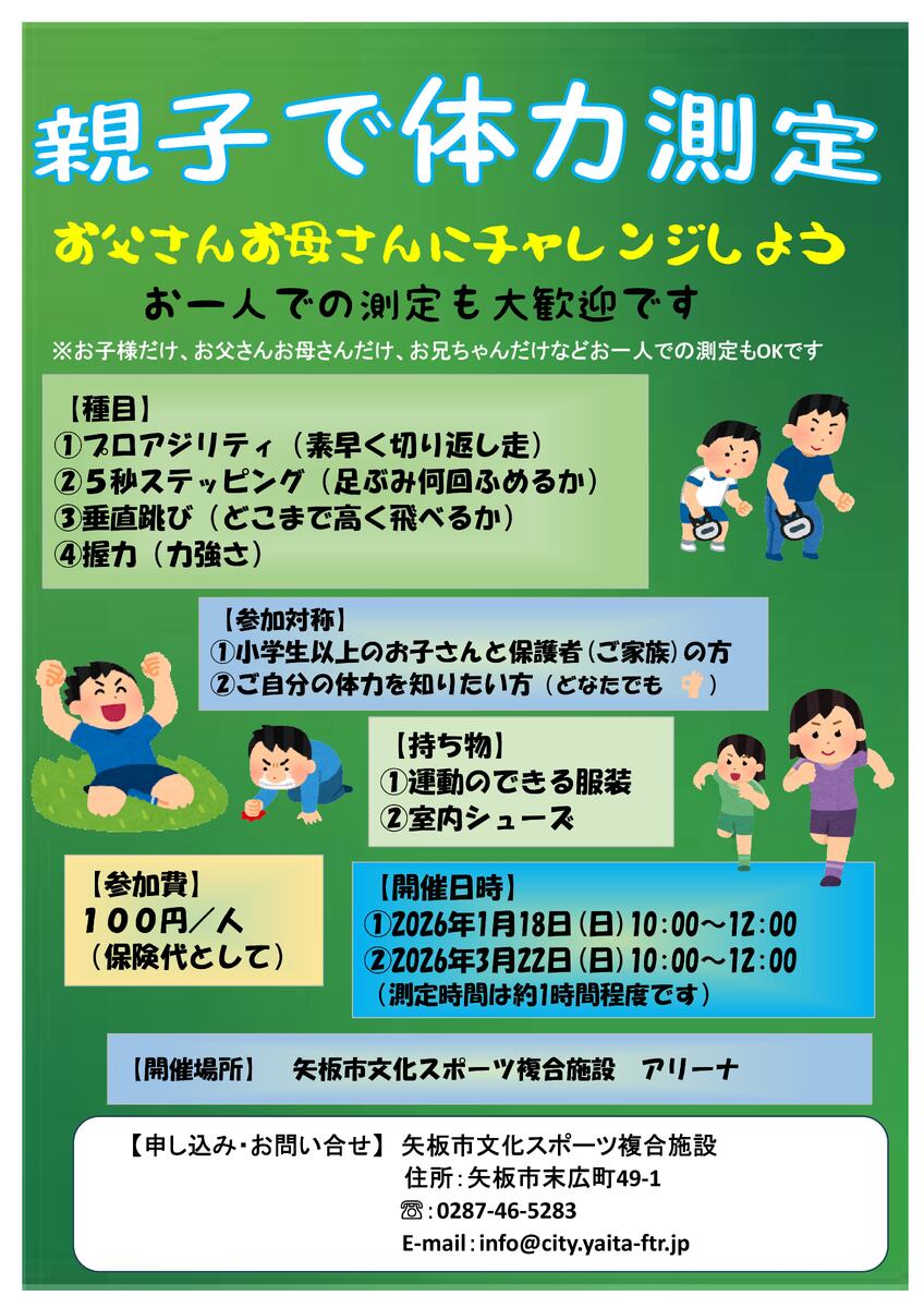 【参加者募集】親子で体力測定
